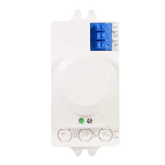 HF-Bewegungsmelder für den Einbau in Leuchten, max. Schaltleistung: ohmsche Last 1200W und LED 100W, Erfassungsbereich 360° 3-10m, Zeiteinstellung 1-12min., Dämmerungseinstellung 2-2000lx;