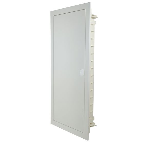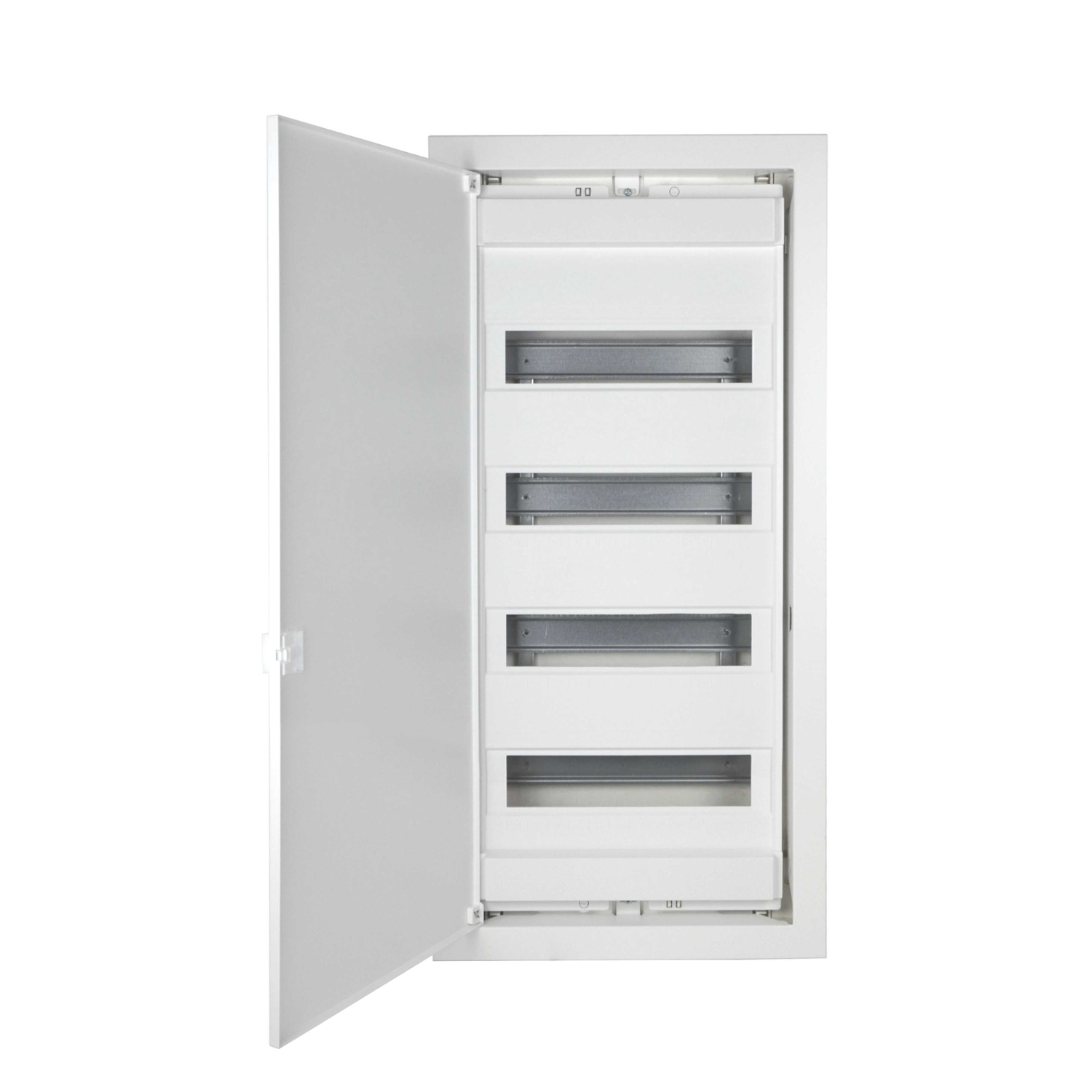 Unterputz-Verteiler zur Montage in Wänden aller Art, bestehend aus Unterteil (Mauerwanne) und Oberteil, Mauerwanne aus Kunststoff, Tür+Rahmen aus Stahlblech, inkl. Hohlwand-Montagesatz, Glühdrahttest: 850°C nach IEC 60670-24, halogenfrei, IP40;