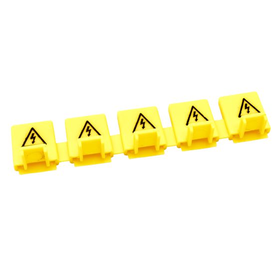 Berührungsschutzabdeckung für Gabel- und Stift-Sammelschienen, 5fach, gelb mit Aufdruck;