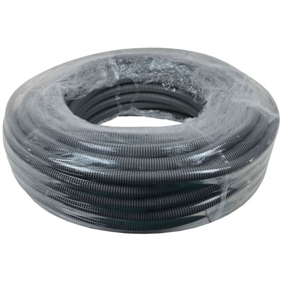 E-Rohr flexibel aus PVC, Kennzeichen: EN33412, Temperaturbereich: -25°C bis +60°C, Scheiteldruckfestigkeit: >750N auf 5cm bei +23°C, Schlagfestigkeit: 2Joule bei -25°C, nicht flammausbreitend, foliert;