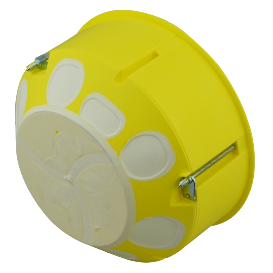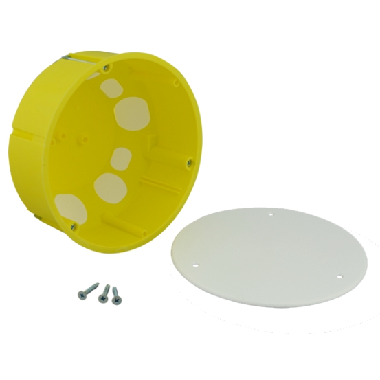 Halogenfreie Hohlwanddose inkl. Deckel, winddicht, Fräsloch Ø 120mm, Tiefe 65mm, Einführungen mit Durchstoßmembrane 3x25mm + 3x20mm + 3x10mm, halogenfrei;