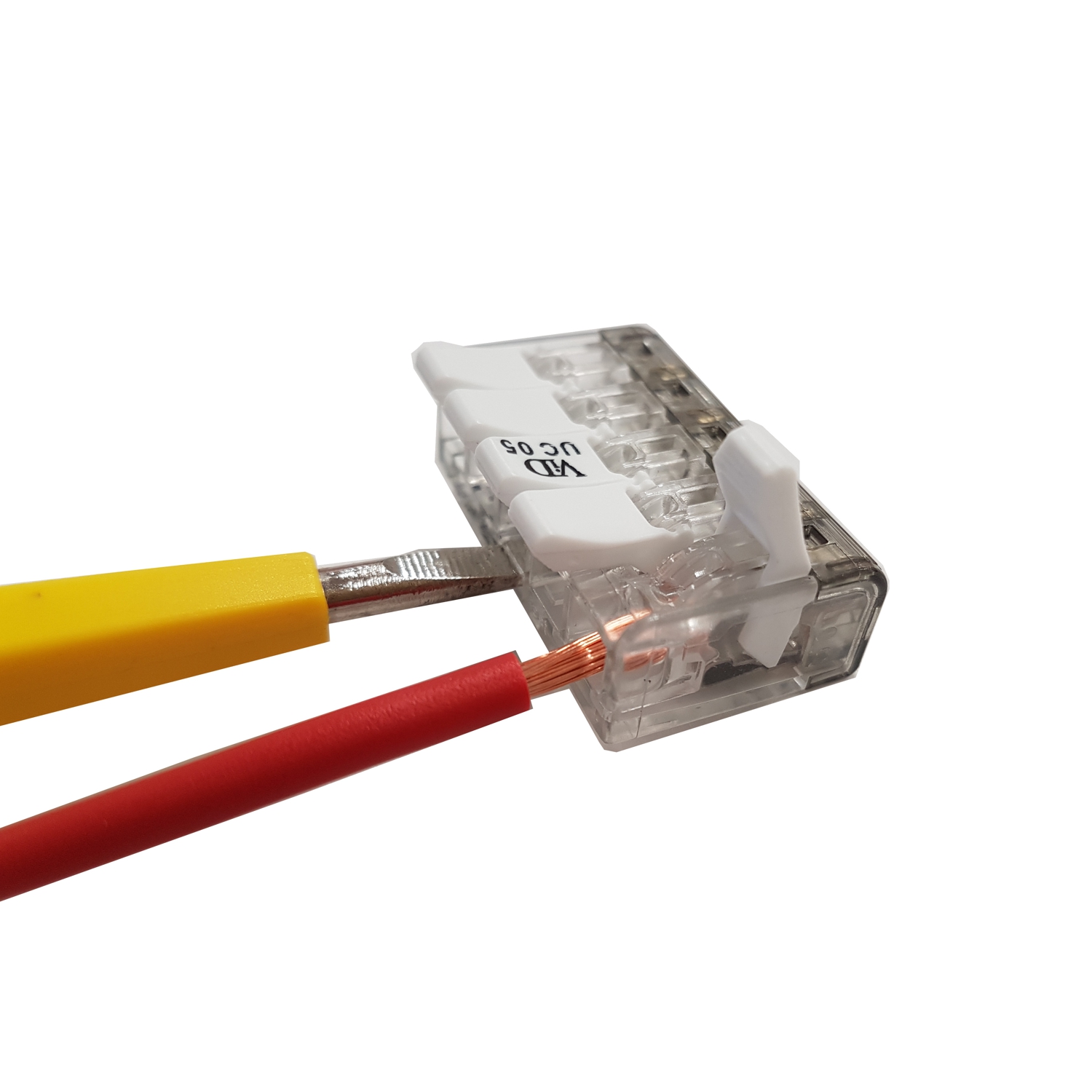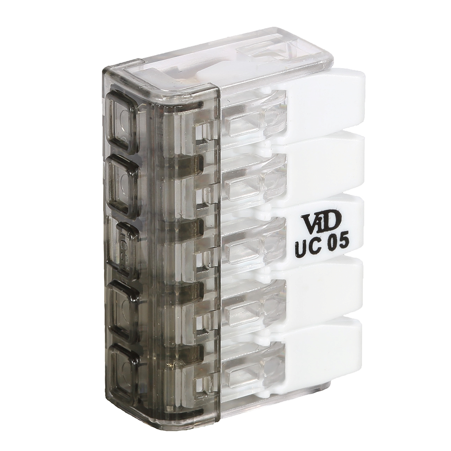 Hebelklemme 5-polig, Nennspannung: 450V, Nennstrom: 32A, Leiterquerschnitt 0,2 - 4mm², Anschluss aller Leiterarten ohne Vorbehandlung, mehr Sicherheit durch transparentes Gehäuse, individuell mischbare Leiterquerschnitte und -arten, einfache Handhabung dank Hebel - werkzeuglos, Auszugfestigkeit bis 60N, Prüfungen: CE / VDE / ENEC, Inhalt: 25 Stück;