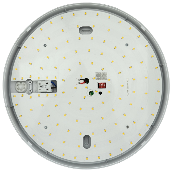 Opalleuchte mit HF-Sensor aus Polycarbonat - halogenfrei, Anschluss 220-240V, 50Hz, Gehäuse und opale Abdeckung aus Kunststoff (PC), CRI=83, Lichtaustritt direkt, Abstrahlwinkel 113°, nicht dimmbar, SK II, IP44, Temperaturbereich - 15°C bis +35°C, Lebensdauer Lampen 25.000h; Sensor: Erfassungsbereich: 360°, Reichweite: bis 5m Radius bei 2,5-4m Montagehöhe, Zeiteinstellung: 5 Sek. bis 10 Min., Dämmerungsschwelle: 30Lux/deaktiviert;