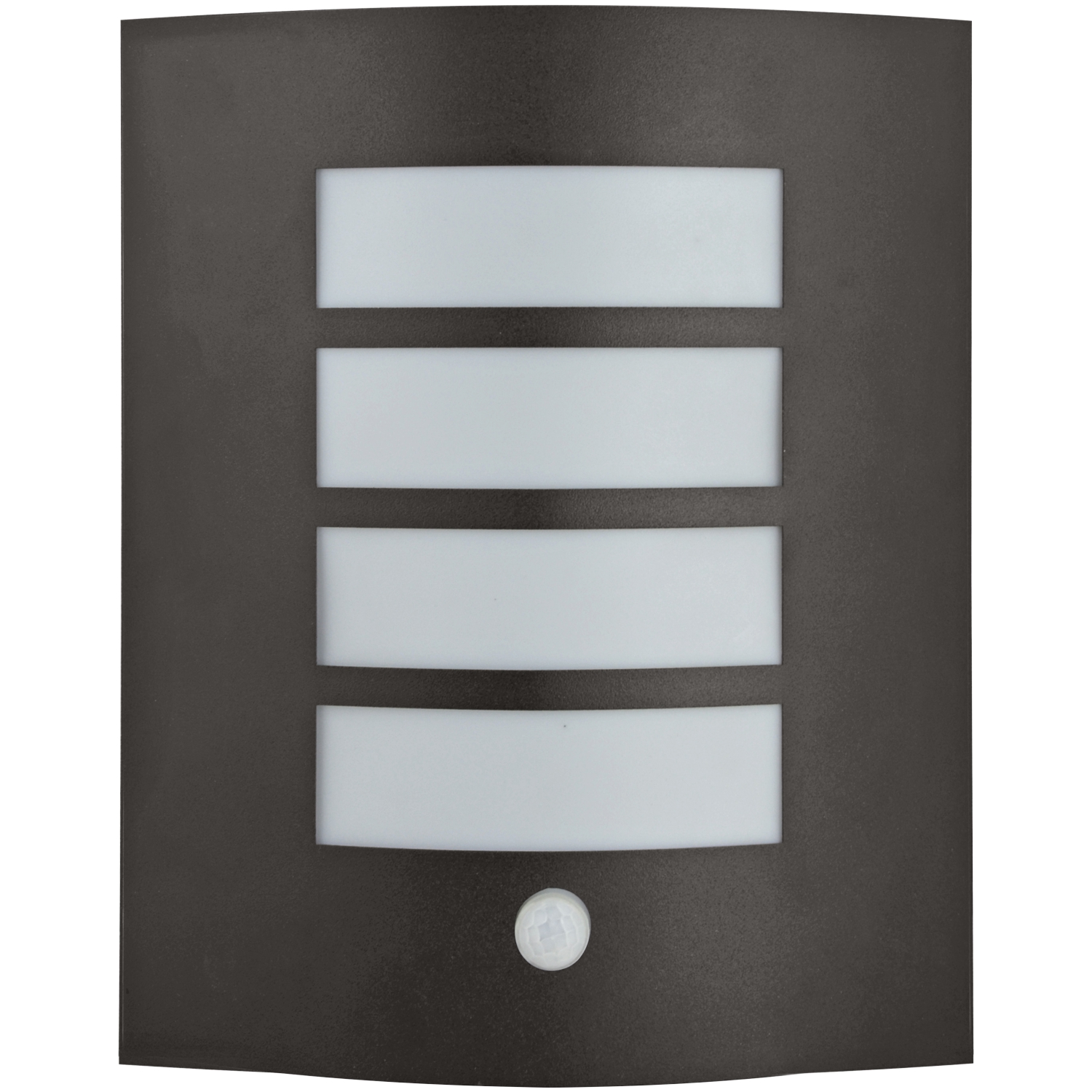 Außenleuchte mit Infrarot Sensor, für Wandmontage, Fassung: 1xE27, IP44, SK II, 220-240V 50Hz, Temperaturbereich -15°C bis +40°C, Sensor: Erfassungsbereich 90°, Helligkeit: < 30Lux, Ausschaltverzögerung: 5s-8min; Reichweite: 4-5m; Leuchtmittel nicht enthalten;