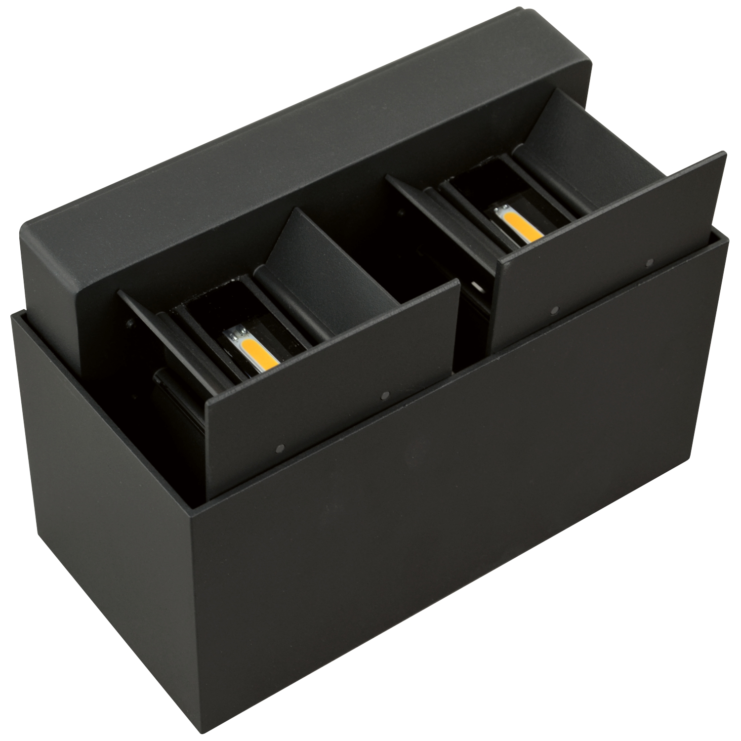 Leuchte für Wandmontage mit up&down-Effekt und verstellbaren Lichtblenden (oben und unten unterschiedlich adjustierbar), IP65, SK I, Lichtfarbe: einstellbar CCT 3000/4000/6000K, 220-240V 50Hz, Aluminium-Gehäuse, CRI>80, nicht dimmbar, Temperaturbereich -15°C bis +40°C, Lebensdauer bis zu 20.000h;