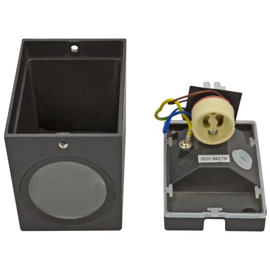 Leuchte für Wandmontage, Fassung: 1xGU10, IP65, SK I, 220-240V 50Hz, Aluminium-Gehäuse, Temperaturbereich -15°C bis +40°C; Leuchtmittel nicht enthalten;