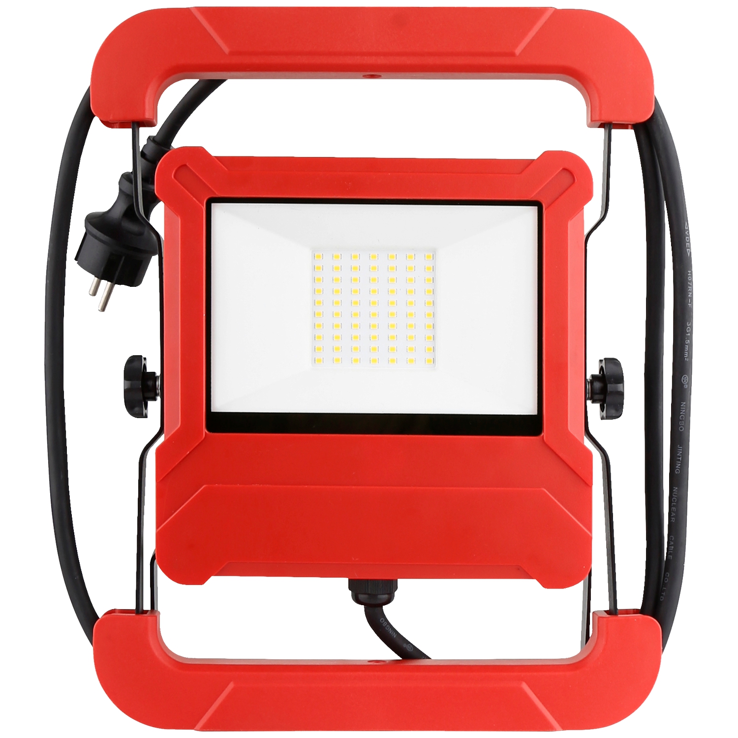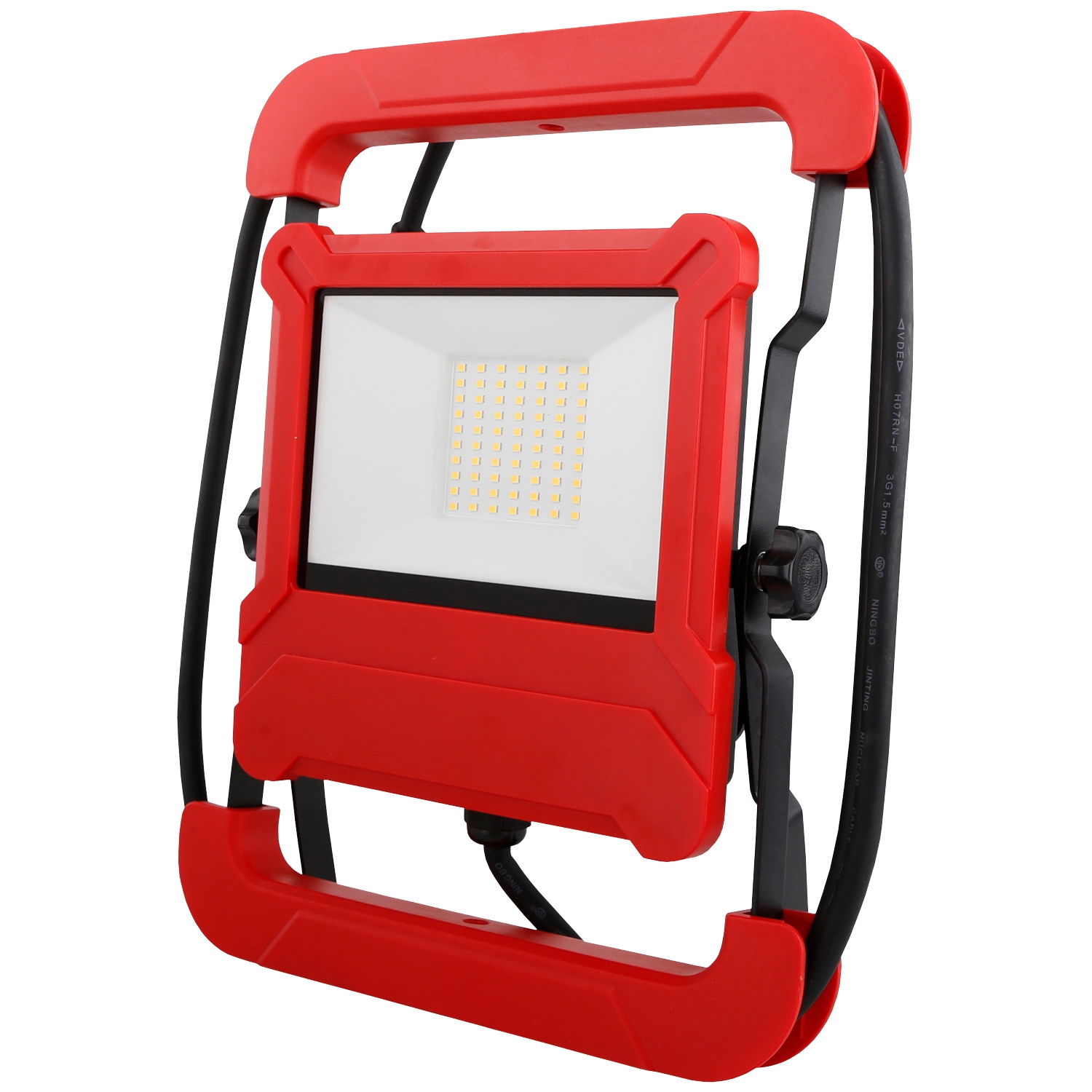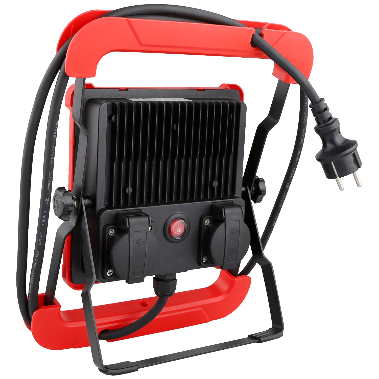 LED Baustellenstrahler 50W 2 Steckdosen IP65 rot