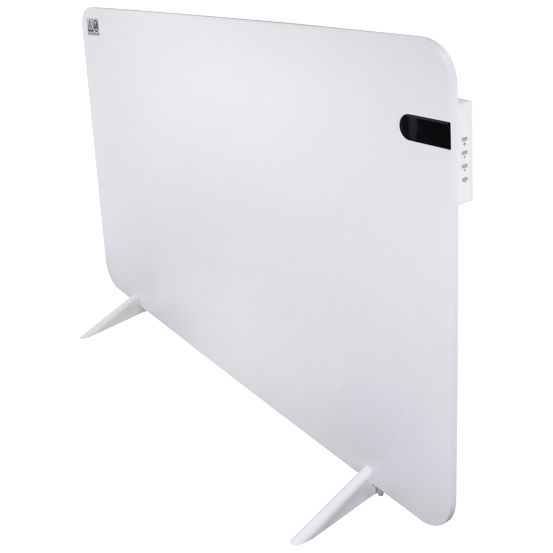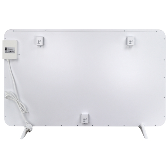 Infrarot-Heizpaneel mit integrierten Thermostat, inkl. Fernbedienung und Standfüße, für Räume von 8-12m² (unverbindlicher Orientierungswert: basierend auf Raumhöhe 2,50m und Dämmung nach heutigem Standard), mit Überhitzungsschutz, 1.9m Anschlussleitung mit Stecker, Anschluss 220-240V AC 50Hz, IP44, Lebensdauer: 100.000Std., Temperatureinstellbereich: 0°C bis +55°C, Timer: 0-24Std., Montage an Wand oder freistehend mittels Standfüße (inkl.); bei Montage mit Standfüßen ist das Heizpaneel gegen Kippen zu sichern;