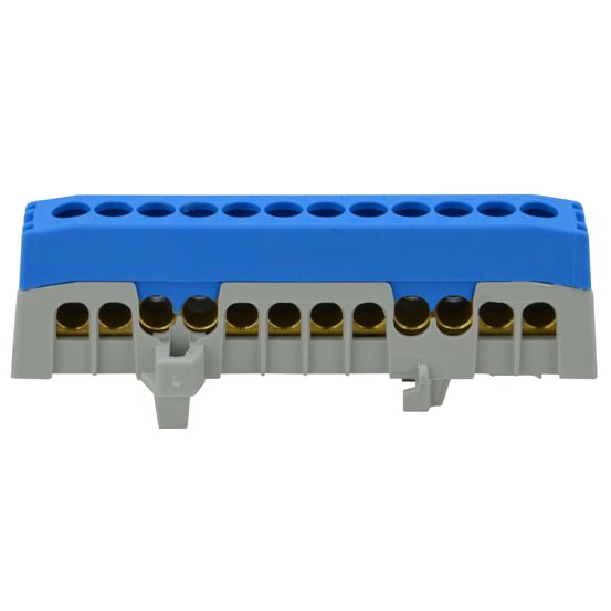 Klemmstein für Hutschienenmontage - Kunststoff halogenfrei, Anschlussmöglichkeit 12pol. bis 16mm², allseitig fingersicher, Leiterklemmen einseitig geschlossen;