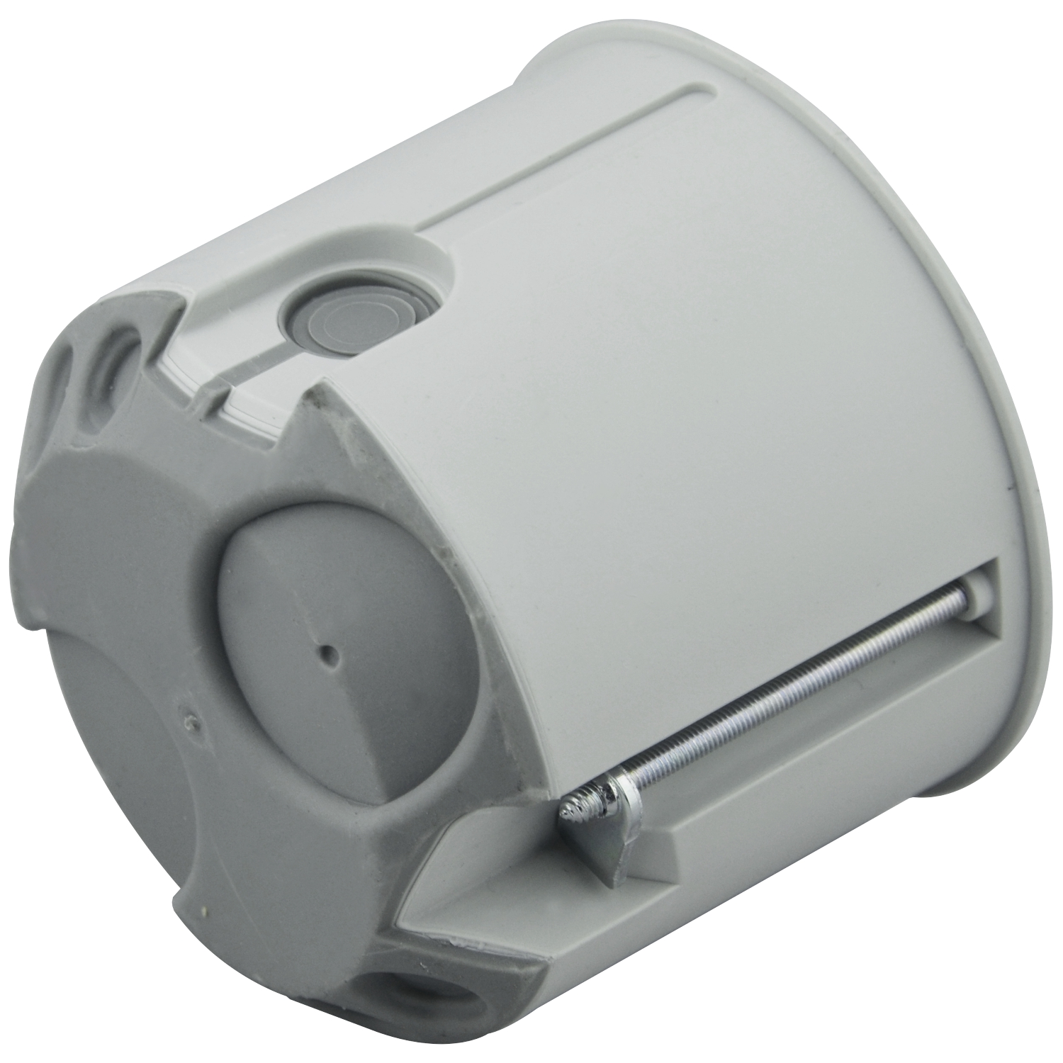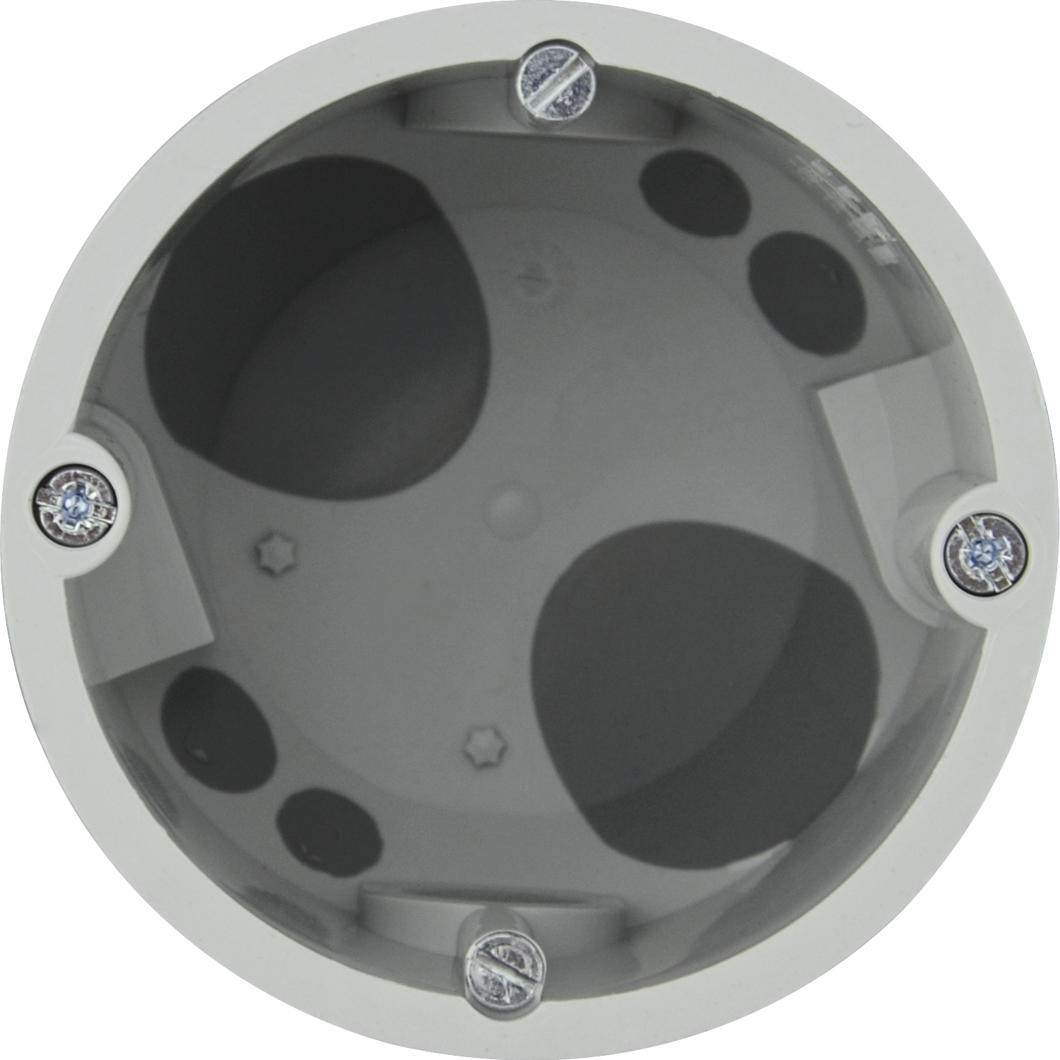Schallschutzdose, Fräsloch 68mm, anreihbar, winddicht, Material PP halogenfrei, 2K-Membraneinführung, gegenüberliegender Einbau ab 120mm Wandstärke möglich, inkl. 5 Verbindungsstutzen Typ E105, IP30, halogenfrei;