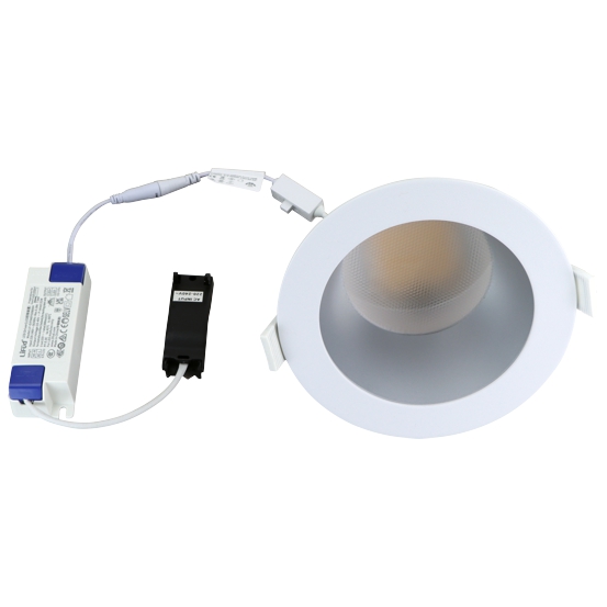 Einbau-Downlight, Lichtfarbe einstellbar (CCT - 3000/4000/6000K), Anschluss: 220-240V AC 50Hz, UGR≤19, CRI>80, Lebensdauer: 50.000h, Schutzklasse II, Schutzart IP65, nicht dimmbar, Gehäuse und Rerflektor aus Aluminium, Abdeckung aus Polycarbonat, Temperaturbereich: -15°C bis +35°C, Ausschnittmaß Ø145-165mm, Einbautiefe 100mm;