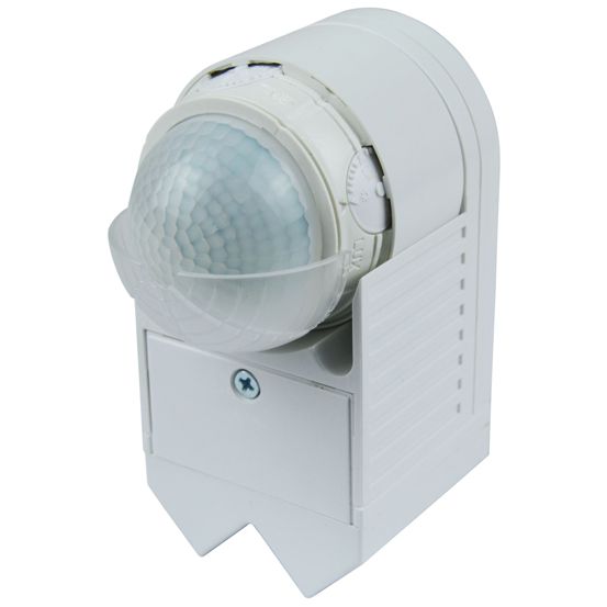 Aufputz Bewegungsmelder für Wand- oder Eckmontage, Erfassungswinkel 360º, Reichweite: bis 12m Radius bei Montagehöhe 2,5m, Ausschaltverzögerung: 10 Sek. bis 15 Min., Dämmerungsschwelle stufenlos einstellbar (3-2000Lux), Schaltleistungen: 1200W ohmsche Last / 300W induktive Last / 80W LED, Temperaturbereich: -20°C bis +40°C, inkl. Eckmontagewinkel und Linsenabdeckung, IP44;