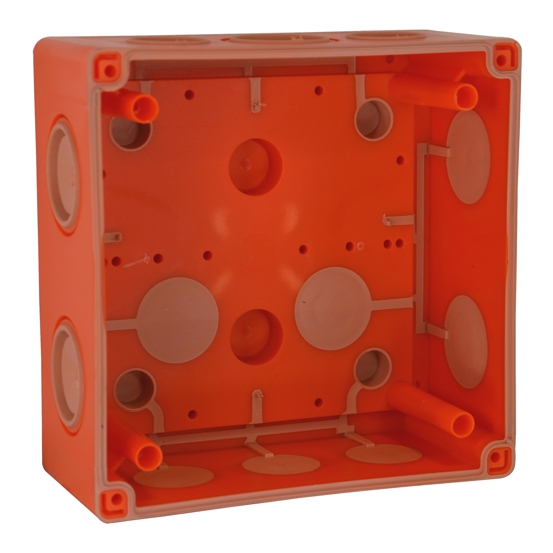 Aufputz-Abzweigkasten mit Funktionserhalt E90, einfache Kabeleinführung durch 10 Stk. Durchstoßmembrane, Keramikklemmblock 5-pol. 1,5 - 10mm², Material Kunststoff halogenfrei, geschraubter Deckel, IP66;