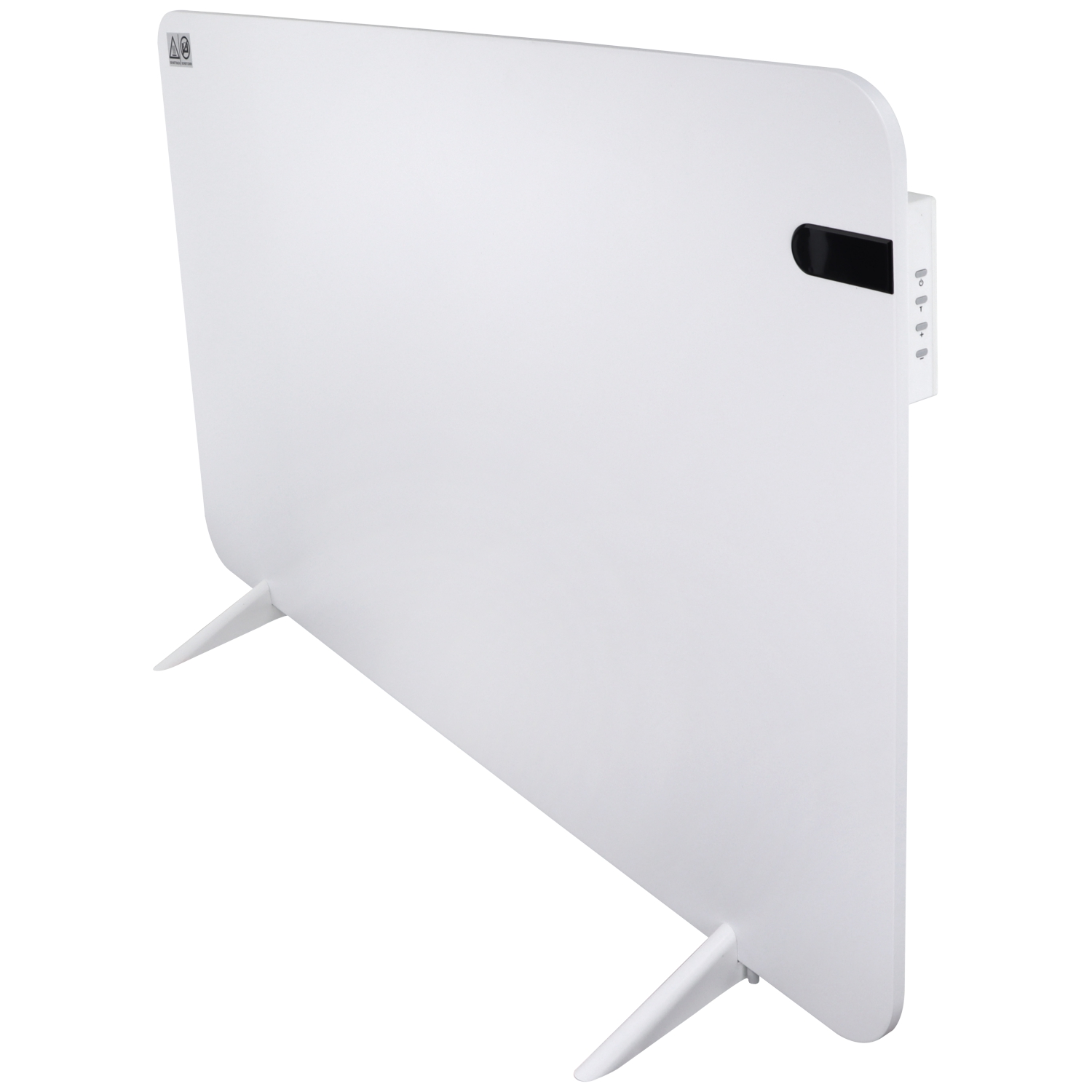 Infrarot-Heizpaneel mit integrierten Thermostat, inkl. Fernbedienung und Standfüße, für Räume von 8-12m² (unverbindlicher Orientierungswert: basierend auf Raumhöhe 2,50m und Dämmung nach heutigem Standard), mit Überhitzungsschutz, 1.9m Anschlussleitung mit Stecker, Anschluss 220-240V AC 50Hz, IP44, Lebensdauer: 100.000Std., Temperatureinstellbereich: 0°C bis +55°C, Timer: 0-24Std., Montage an Wand oder freistehend mittels Standfüße (inkl.); bei Montage mit Standfüßen ist das Heizpaneel gegen Kippen zu sichern;