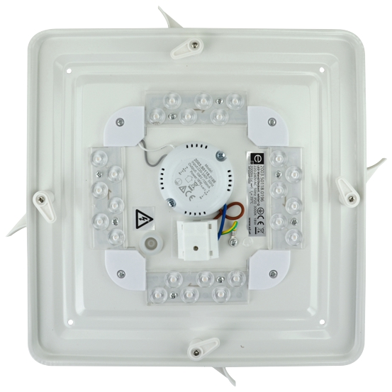 Opalleuchte LED für Wand- und Deckenmontage, Anschluss 220-240V, 50Hz, SK I, IP20, Leuchtenunterteil Stahlblech, Abdeckung PMMA opal flat, CRI>80, Lichtaustritt direkt, Abstrahlwinkel 116°, nicht dimmbar, Temperaturbereich - 15°C bis +35°C, LED-Lebensdauer bis zu 25.000h