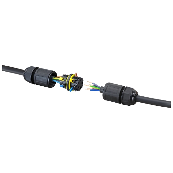 Verbinder mit Hebelklemmen für die schnelle und einfache Verbindung von Kabeln, Bemessungsspannung: 450V AC, Bemessungsstrom: 24A, Kabeldurchführung: Ø6-11mm, Kabelquerschnitte: 0,5-2,5mm², halogenfrei, UV beständig;