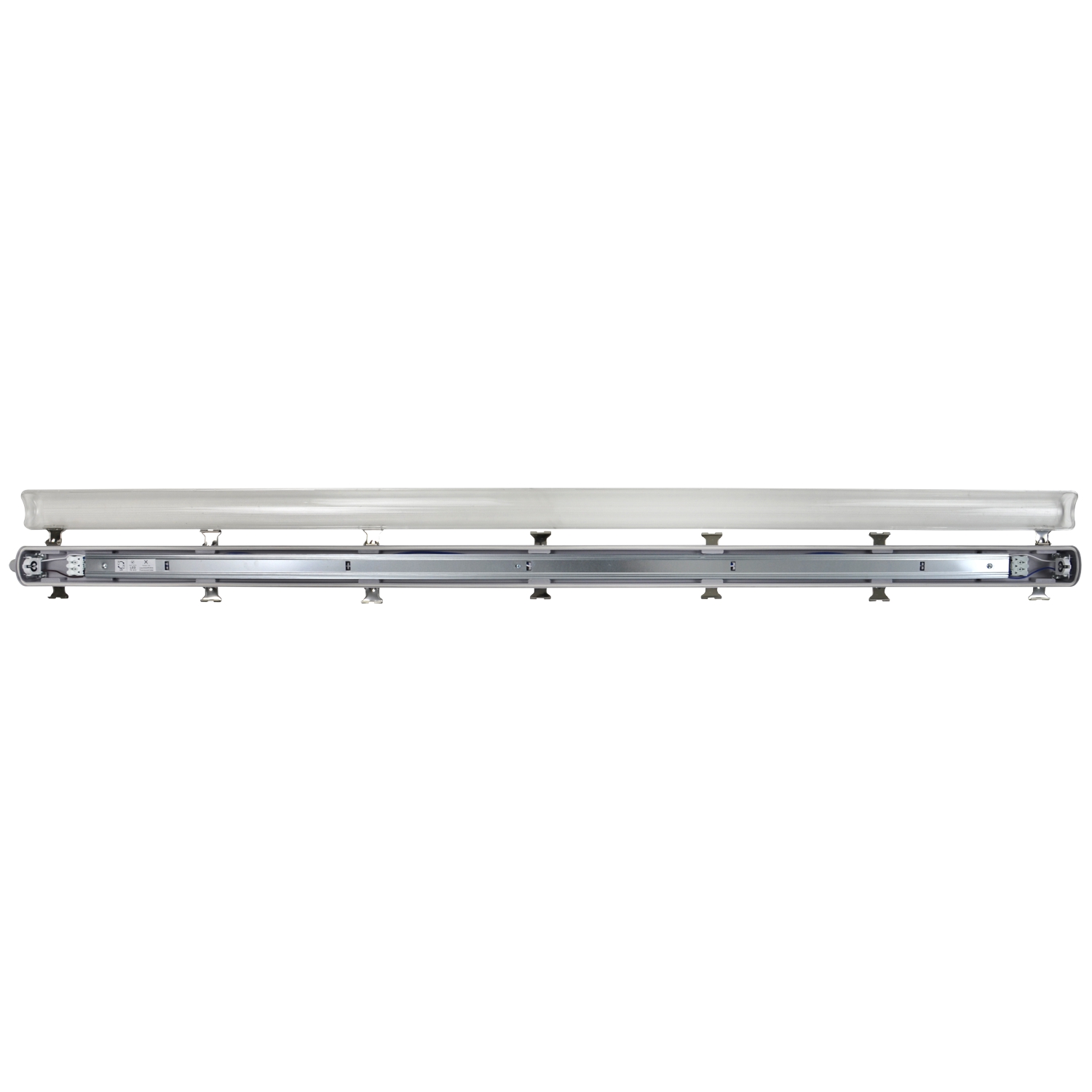 Diese Feuchtraum-Wannenleuchte wurde für anspruchsvollste Umgebungen konzipiert und bietet dir die ideale Kombination aus extremer Widerstandsfähigkeit und Flexibilität. Mit dem standardisierten T8/G13-Sockel kannst du selbst entscheiden, welches Leuchtmittel am besten zu deinen Anforderungen passt.