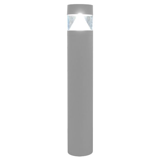 Pollerleuchte LED aus Aluminium pulverbeschichtet, innenliegender Bodenflansch mit seitlicher Befestigung des Pollers, Abdeckung aus Polycarbonat transparent, innenliegender nach unten gerichteter Diffusor aus Edelstahl, 4000K, Lebensdauer Ø30.000 Stunden, IP65, IK08;