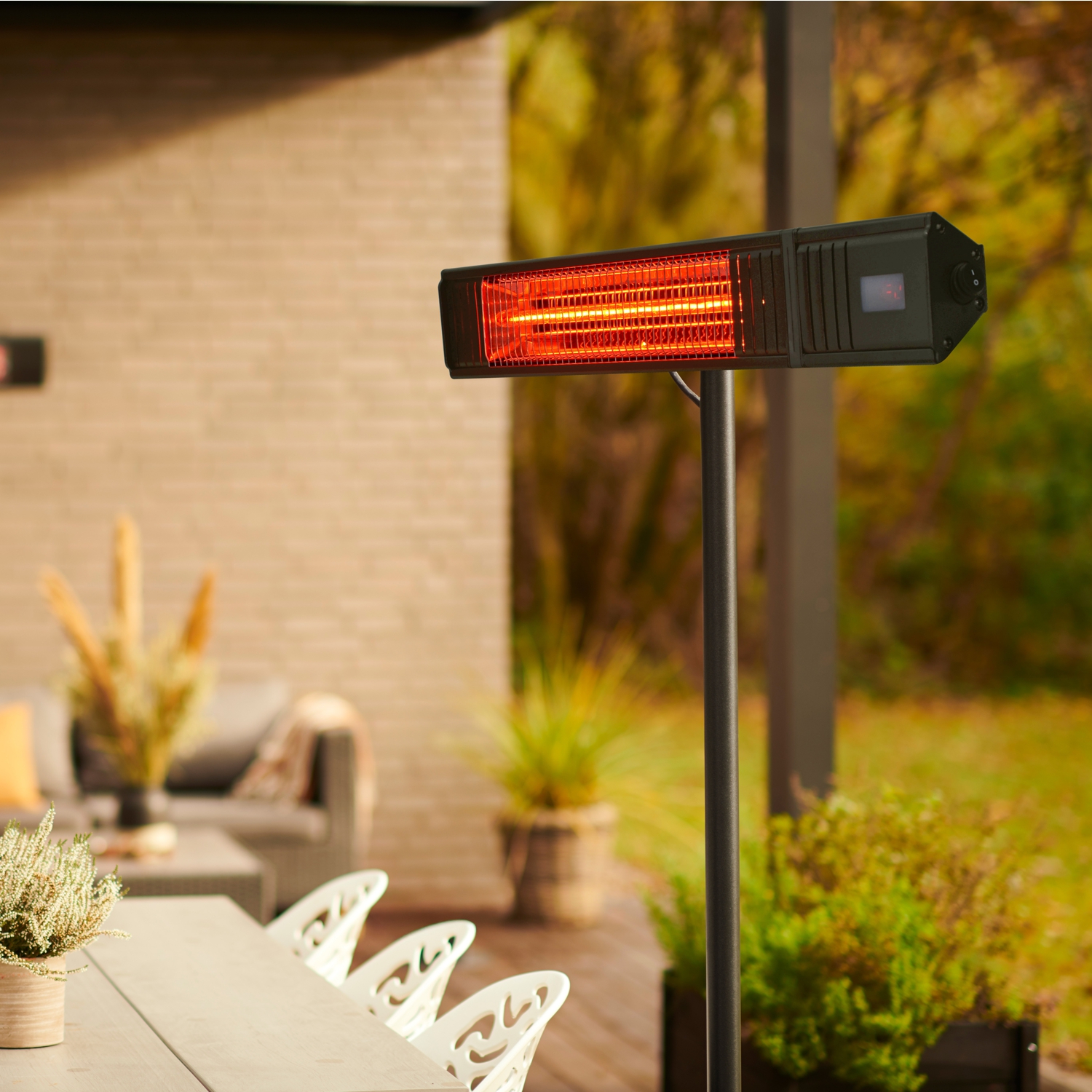 Das Gehäuse aus schwarzem Aluminium macht das Gerät nicht nur zu einem optischen Highlight, sondern auch extrem widerstandsfähig. Dank der hohen Schutzart IP65 ist der Heizstrahler vollständig gegen Staub und starkes Strahlwasser geschützt, was ihn ideal für den ganzjährigen Einsatz im Freien macht. Mit einem Gewicht von nur 1,5kg und dem mitgelieferten Montagebügel ist die Anbringung an der Wand denkbar einfach. Das Gerät funktioniert zuverlässig bei Temperaturen von -15°C bis +35°C.