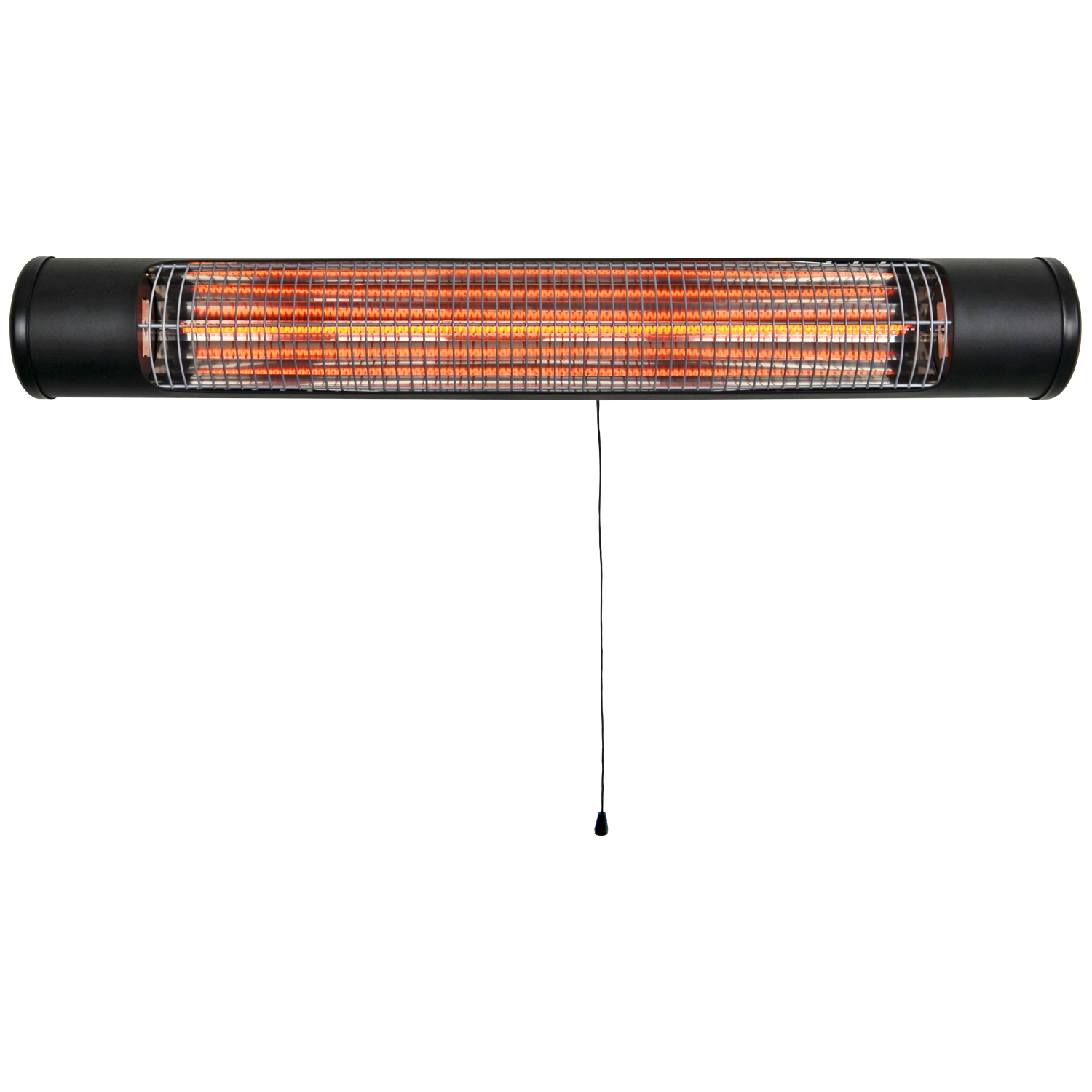 Infrarot-Heizstrahler 1500W zur Wandmontage, Heizelement Kohlefaserröhre mit ca. 10.000h Lebensdauer, 2 Heizstufen (750W/1500W), Schalter mit Zugschnur, Gehäuse aus Aluminium, 1.5m Anschlussleitung mit Stecker, Anschluss 220-240V AC 50Hz, IPX4, Gewicht: 1,9kg, inkl. Montagebügel und Montagematerial, -15°C bis +35°C