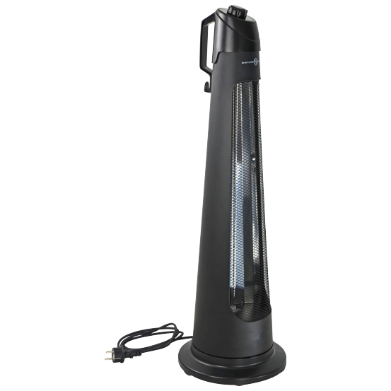 Infrarot-Heizstrahler 1200W freistehend, Heizelement Kohlefaser-Röhre (carbon fiber) mit ca. 10.000h Lebensdauer, 2 Heizstufen (600/1200W), Drehfunktion 65°, Gehäuse aus Stahlblech, 1.5m Anschlussleitung mit Stecker, Anschluss 220-240V AC 50Hz, IP24, Gewicht: 3,0kg, -15°C bis +35°C;