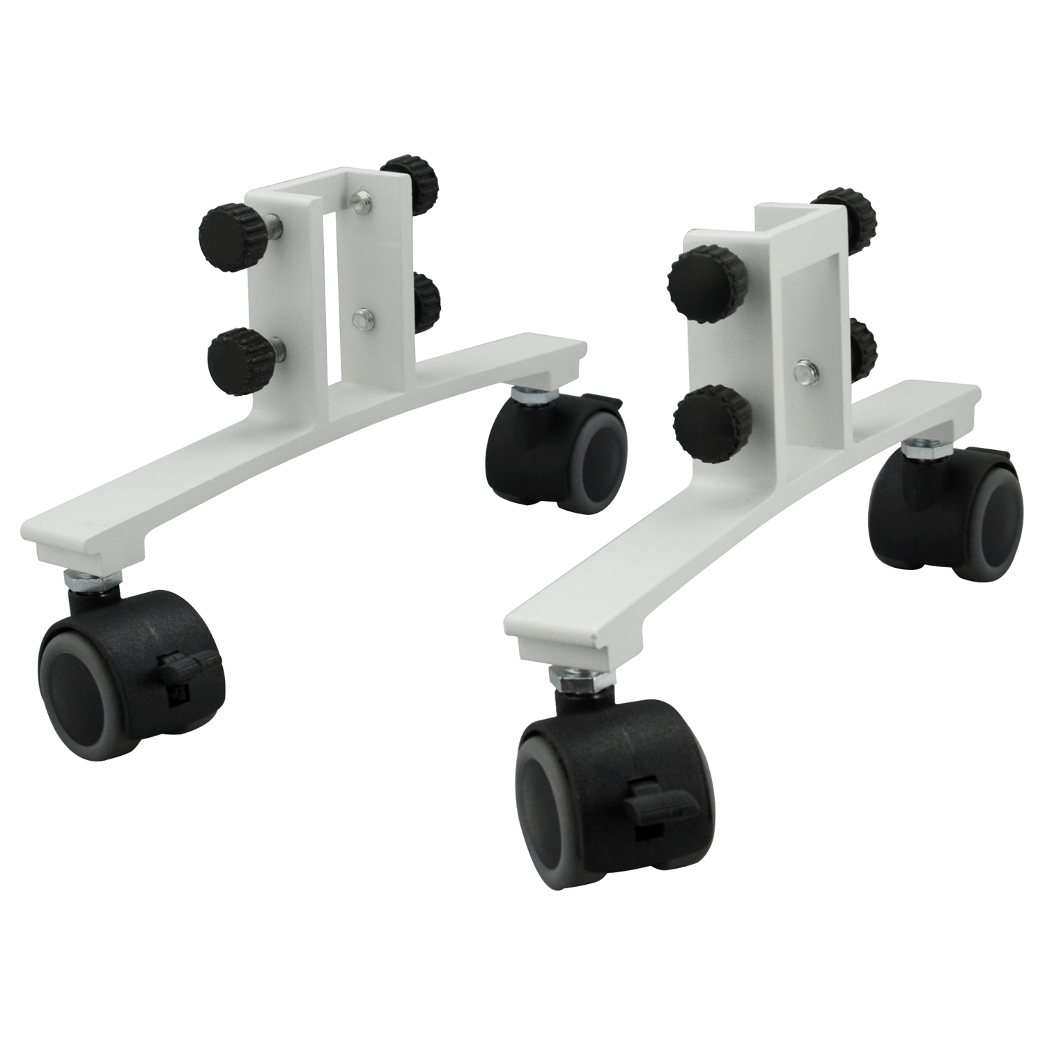 Standfüße aus Aluminium, passend für alle IR-Heizpaneele INFRAe² -Serie; Montage mit oder ohne Rollen möglich; inkl. Filzgleiter zur bodenschonenden Aufstellung ohne Rollen, max. Klemmweite 30mm - Inhalt: 2 Stück;