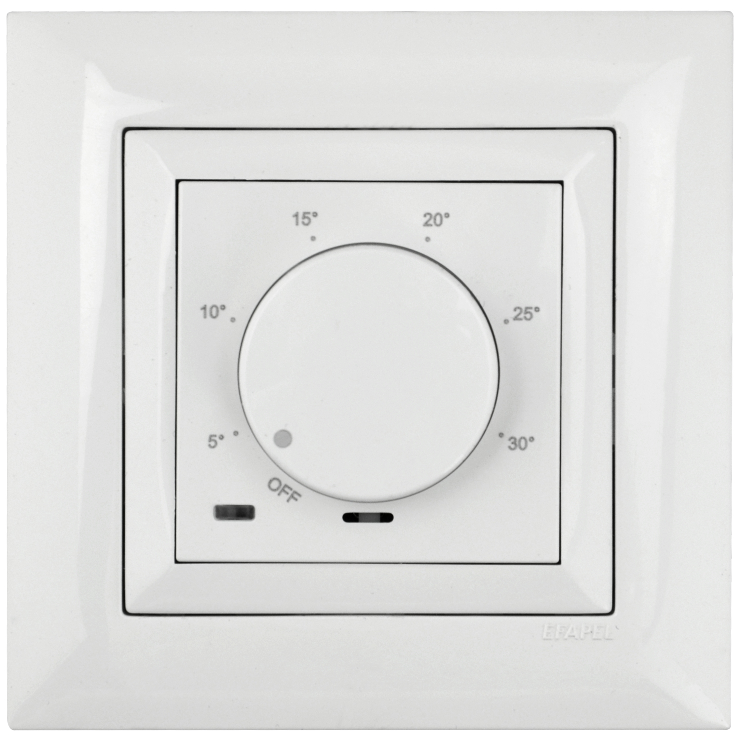 Unterputz Einsatz Raumthermostat mechanisch Logus90 von EFAPEL, Anschlussspannung 100-240V AC, Schaltkontakt potentialfrei max. 16A (3600W, cosφ =1), 1 Schaltkontakt potentialfrei, Einstellung Heizen oder Kühlen, Einstellbereich Off, 5°C bis 30°C, Anschluss der Bodensonde möglich;