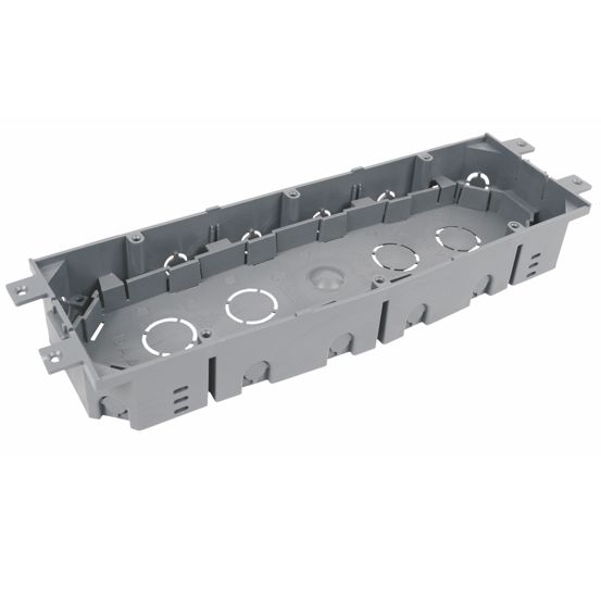 Gerätebecher passend f. Geräteeinsatz UNI8, Aufnahme von 3x60mm Schalt- und Steckgeräten oder 4x45mm Modul Schalt- und Steckgeräten, Abdeckungen 3x60mm, 4x45mm oder volle Platte separat zu bestellen, Material Kunststoff schlagfest, halogenfrei;