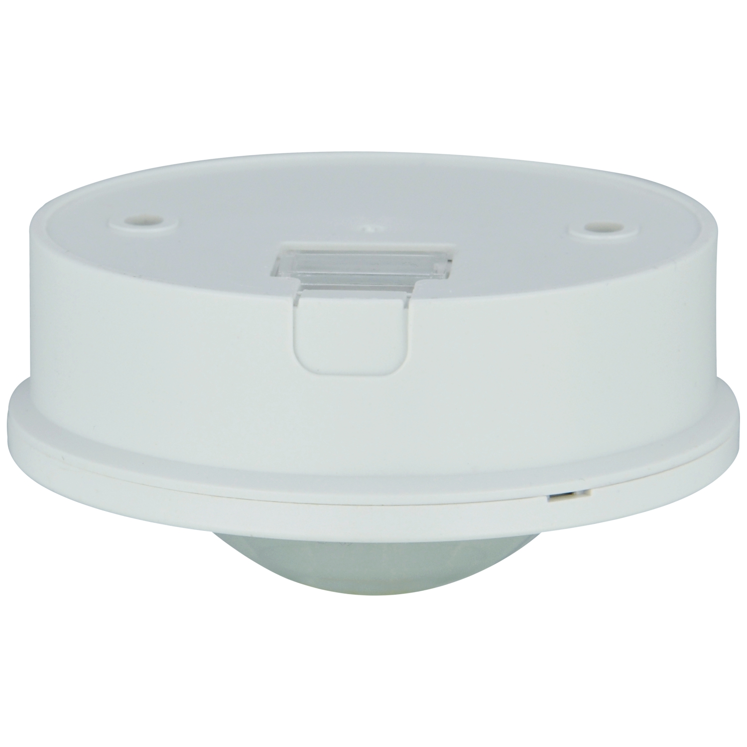 Einbau/Aufbau Bewegungsmelder geeignet zum Deckeneinbau (Ausschnitt Ø68mm) oder Deckenaufbau (inkl. Aufputzgehäuse), Erfassungswinkel 360º, Reichweite: bis 4m Radius bei einer Montagehöhe von 2,2m bis 4m, Ausschaltverzögerung: 10 Sek. bis 30 Min., Dämmerungsschwelle stufenlos einstellbar (3-2000Lux), Schaltleistungen: 800W ohmsche Last / 400W induktive Last / 80W LED;