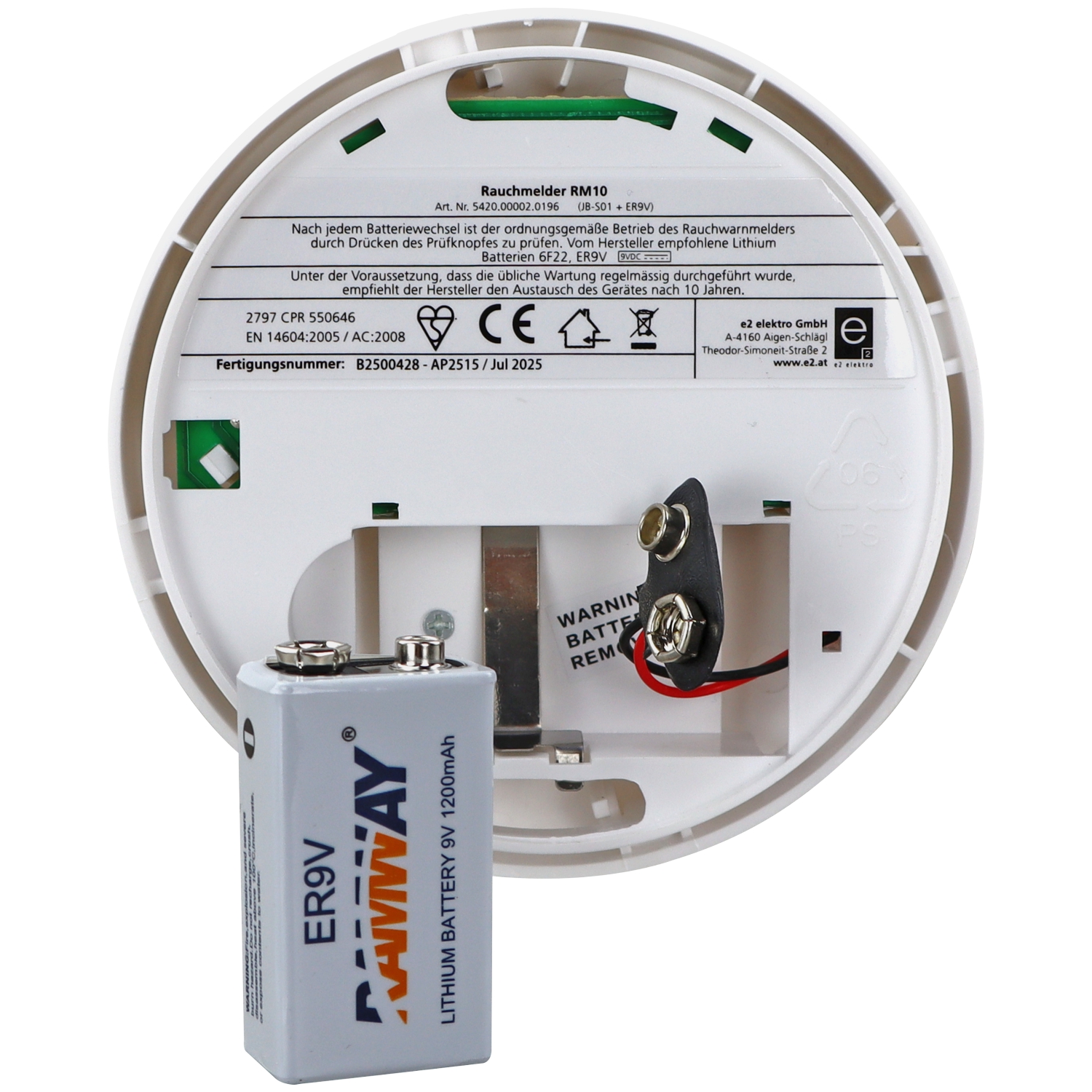 Die mitgelieferte 9V Lithium-Batterie mit 1200 mAh sorgt für eine außergewöhnliche Batterielebensdauer von bis zu 10 Jahren. Nie wieder musst du dir Sorgen um den Batteriewechsel machen. Bei zu niedriger Batteriespannung wirst du zuverlässig durch einen Warnton informiert, damit du immer geschützt bist.