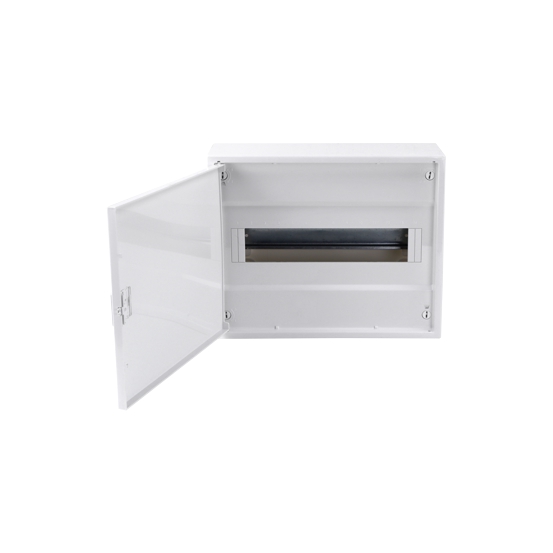 Aufputz-Verteiler aus Kunststoff mit Tür (kann auch entfernt werden), 12(14)TE, IP40, Bemessungsspannung: 400V, Bemessungsstrom: 63A, Material: Kunststoff, Glühdrahttest: 650°C, inkl. Klemm-Material, Anzahl der PE/N Anschlüsse: 10/10;